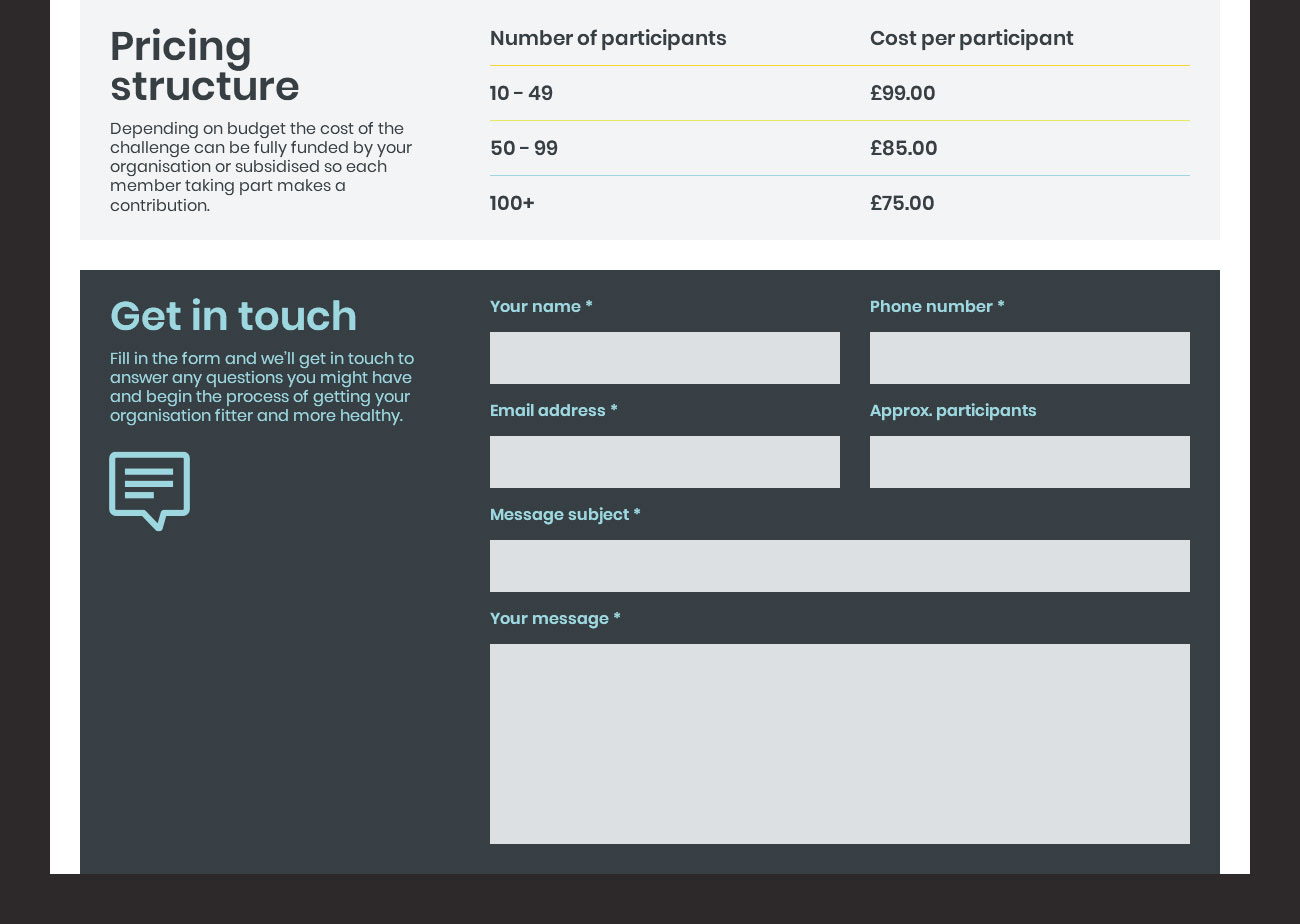 Above the pricing, the account area section illustrates the feedback system using fun icons and a simple colour scheme which is drawn from the logo. To finish, pricing details are transparently displayed and a simple contact form invites interactions from potential clients. To finish, pricing details are transparently displayed and a simple contact form invites interactions from potential clients.