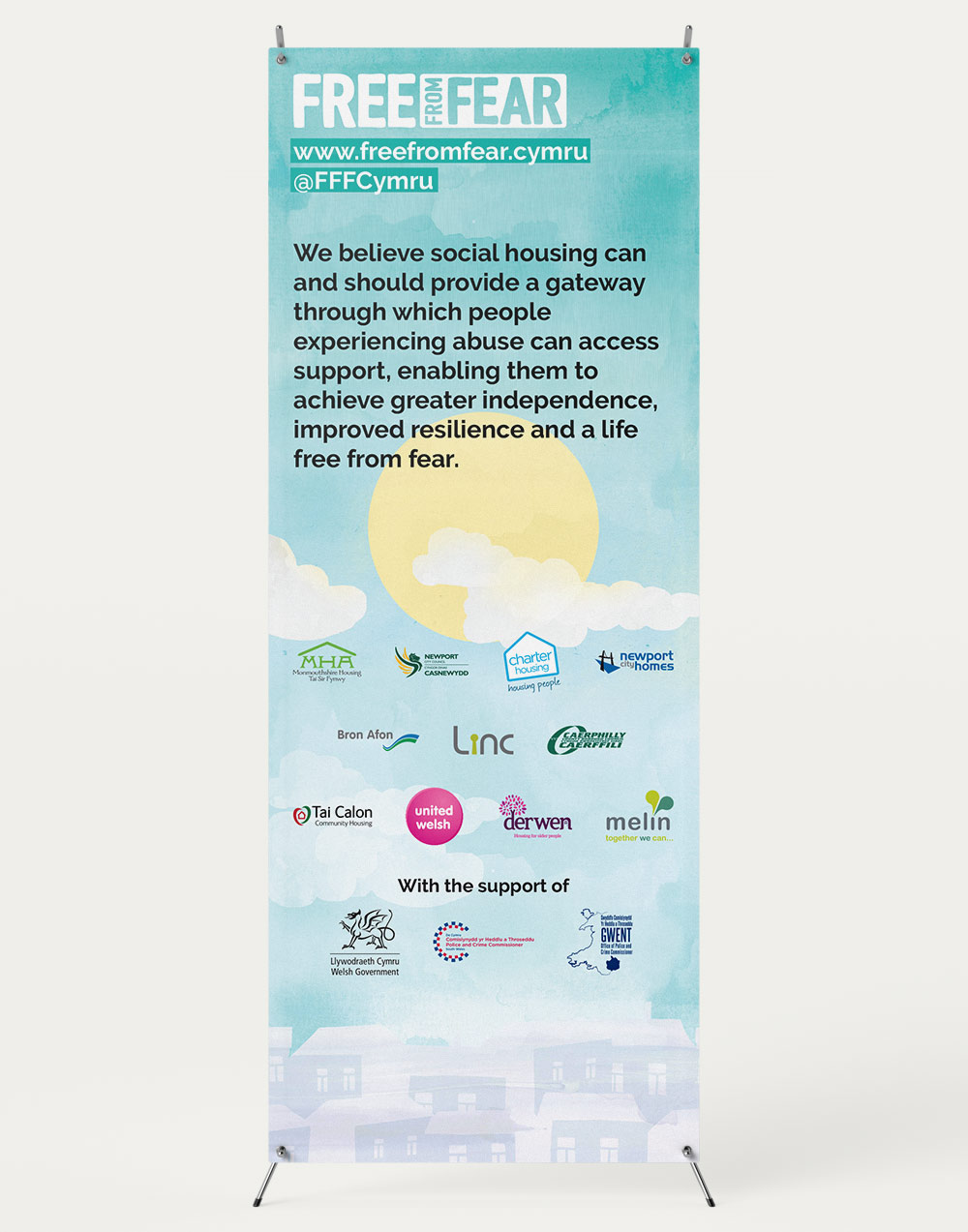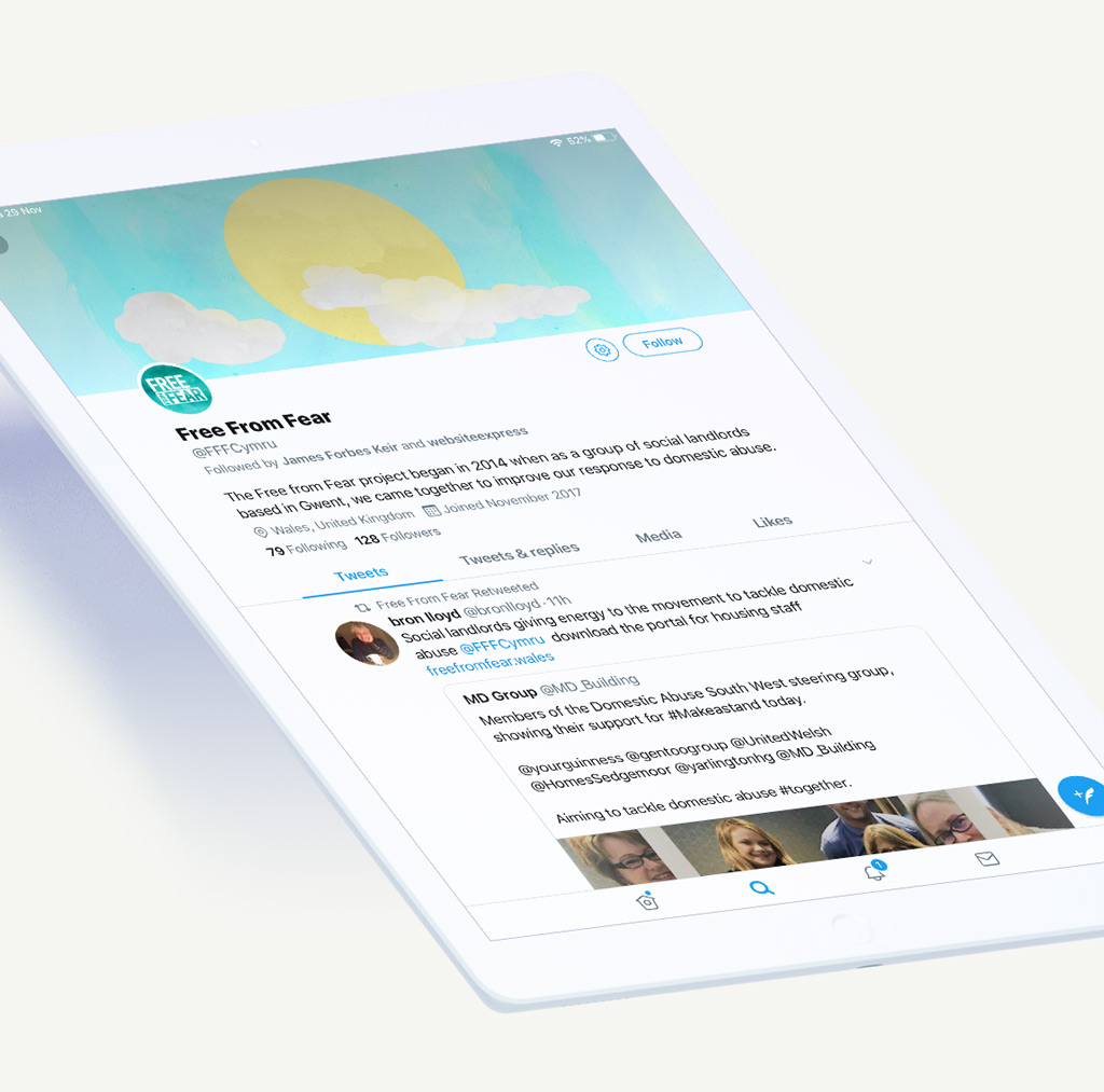 Unified branding across all media platforms is important for any organisation, no matter how big or small. The simple addition of the recognisable 'sun' image as a header and a "square" version of the Free From Fear logo tied their social media account into the website.